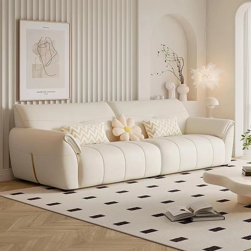 フレンチシックな軽奢ソファ|モダンでシンプルなデザイン|大小様々なリビングにぴったり|高級感あふれる欧州スタイル|豪華なアメリカンレザーソファで、あなたのヴィラを格上げ!